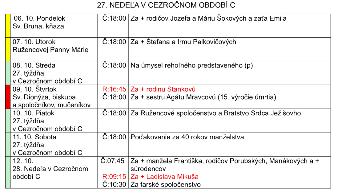 °Tradičné stredajšie sv. omše s prvoprijímajúcimi začnú v stredu 1. októbra. Najbližšie stretnutie rodičov prvoprijímajúcich detí bude 26. 10. vo FPC. Termín 1. sv. prijímania v roku 2026 bude 17. 05.